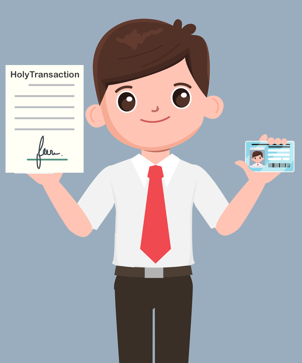 Thank you for being a valued member of HolyTransaction. In order to improve the quality and security of the services we offer on our platform, and to comply with current legislation and our Terms of Service, we need to ask you to complete the KYC procedure.
